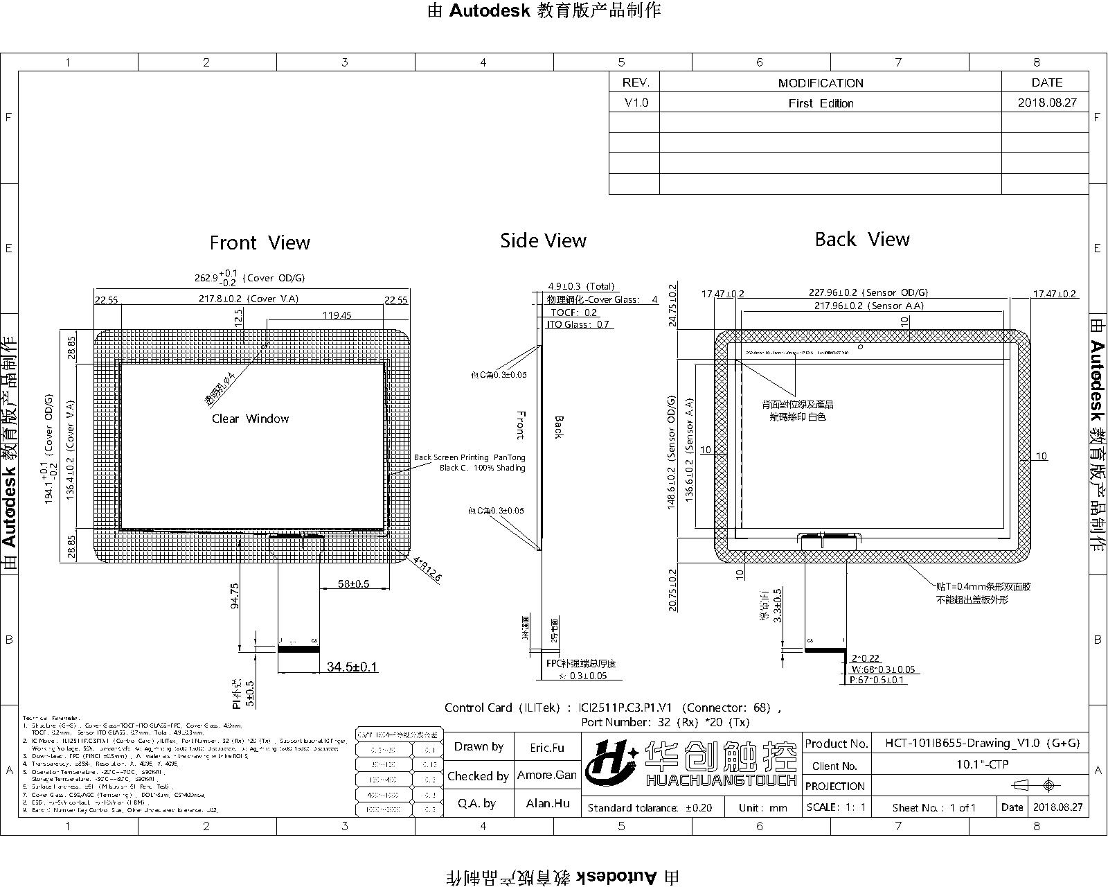 可視區(qū):217.8(L)×136.4(W)mm